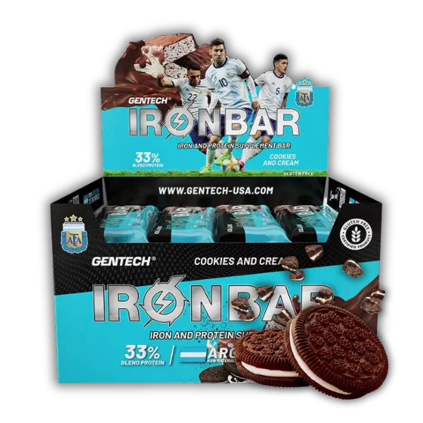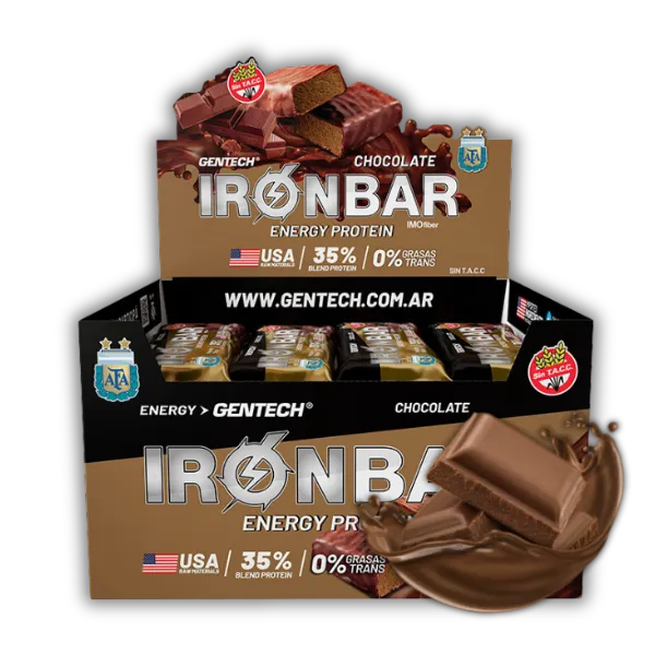 Gentech IronBar es una barra nutricional con un importante aporte de proteínas de suero lácteo e hidratos de carbono, las primeras con alta concentración de aminoácidos ramificados (recuperación y crecimiento muscular) y los últimos como fuente de energía para los músculos.