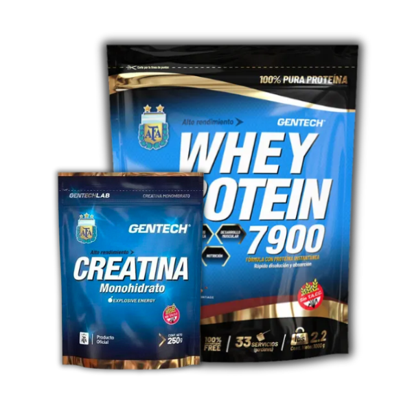 Combo Gentech Whey Protein AFA 7900 1Kg + Creatina Monohidrato 250grs