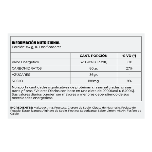 Durante el entrenamiento o competencia y en condiciones de alta sudoración, utilizar con PROSALT, ya que SPORT FUEL tiene un bajo aporte de electrolitos.