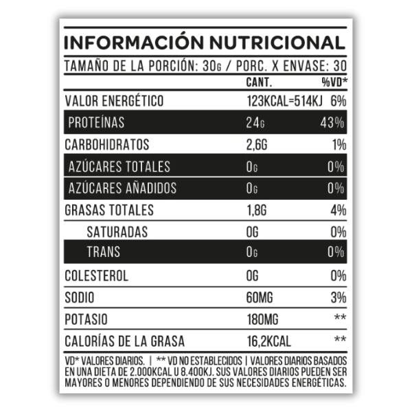 Concentrado de Proteína de Suero Lácteo, Colágeno Hidrolizado, ARO: Sabor Vainilla o Chocolate, EDU: Sucralosa (40mg/100cm3), EDU: Potasio Acesulfamo