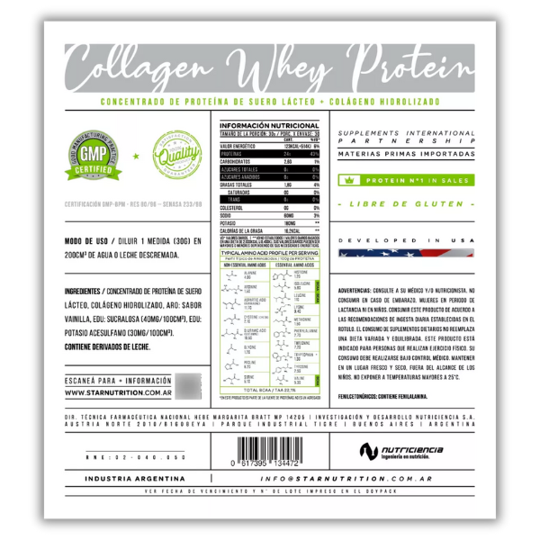 Star Nutrition Collagen Whey Protein 2Lbs (908grs)