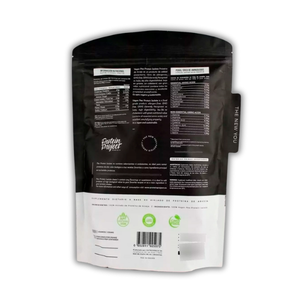 Protein Project Pea Protein Isolate es un producto de calidad alimentaria, libre de alérgenos, GMO free, GRAS (Generally Recognized as Safe), de alta digestibilidad, bajo en grasas, sin colesterol, con gran valor nutricional (contiene todos los aminoácidos esenciales) y excelente propiedad emulsificante. Es de origen vegetal a base de arvejas.